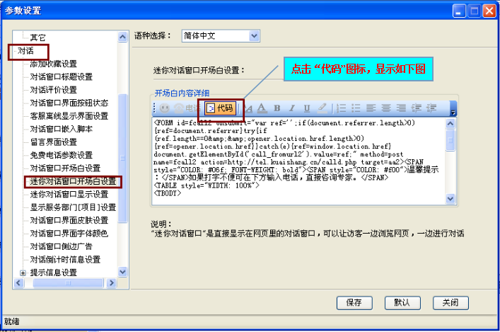 登錄商務通后臺 —— 系統設置 —— 參數設置 —— 對話 —— 迷你對話窗口開場白設置