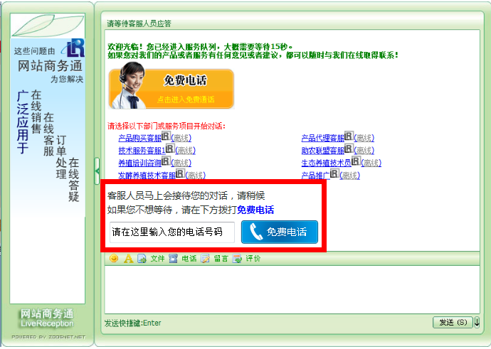 - 如何在“在線客服”頁面上嵌入快商通免費電話(商務通、53KF
