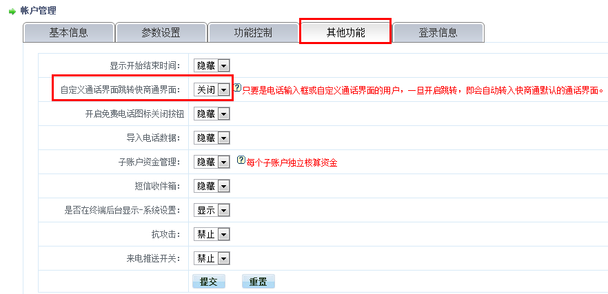 只需將“自定義通話界面跳轉快商通界面”的功能“關閉”即可(操作流程:進入免費電話總后臺設置)。