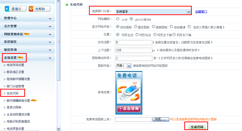 - 設(shè)置流程:【設(shè)置中心】→【生成代碼】→【站點】→【電腦生成代碼】→【PC留言】→【在線留言設(shè)置】→【手機(jī)在線留言】→【設(shè)置第8步驟】