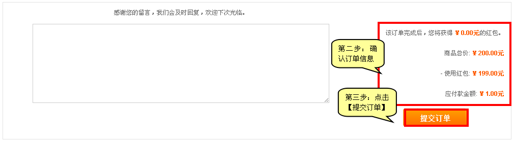 第五步:確認購買信息后,點擊【提交訂單】,見如下圖:
