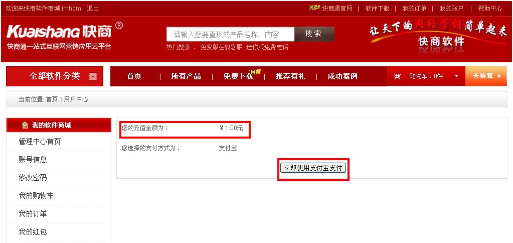 第八步:確認充值金額,點擊【立即使用支付寶支付】,見如下圖:
