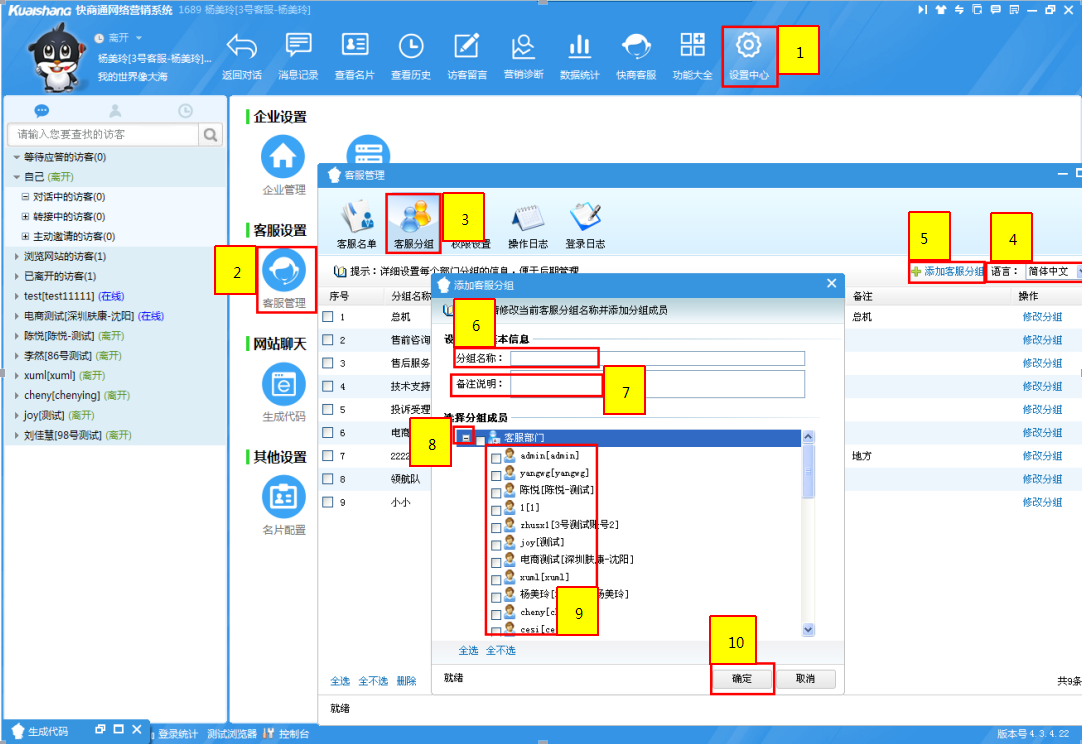 步驟2:設(shè)置客服分組