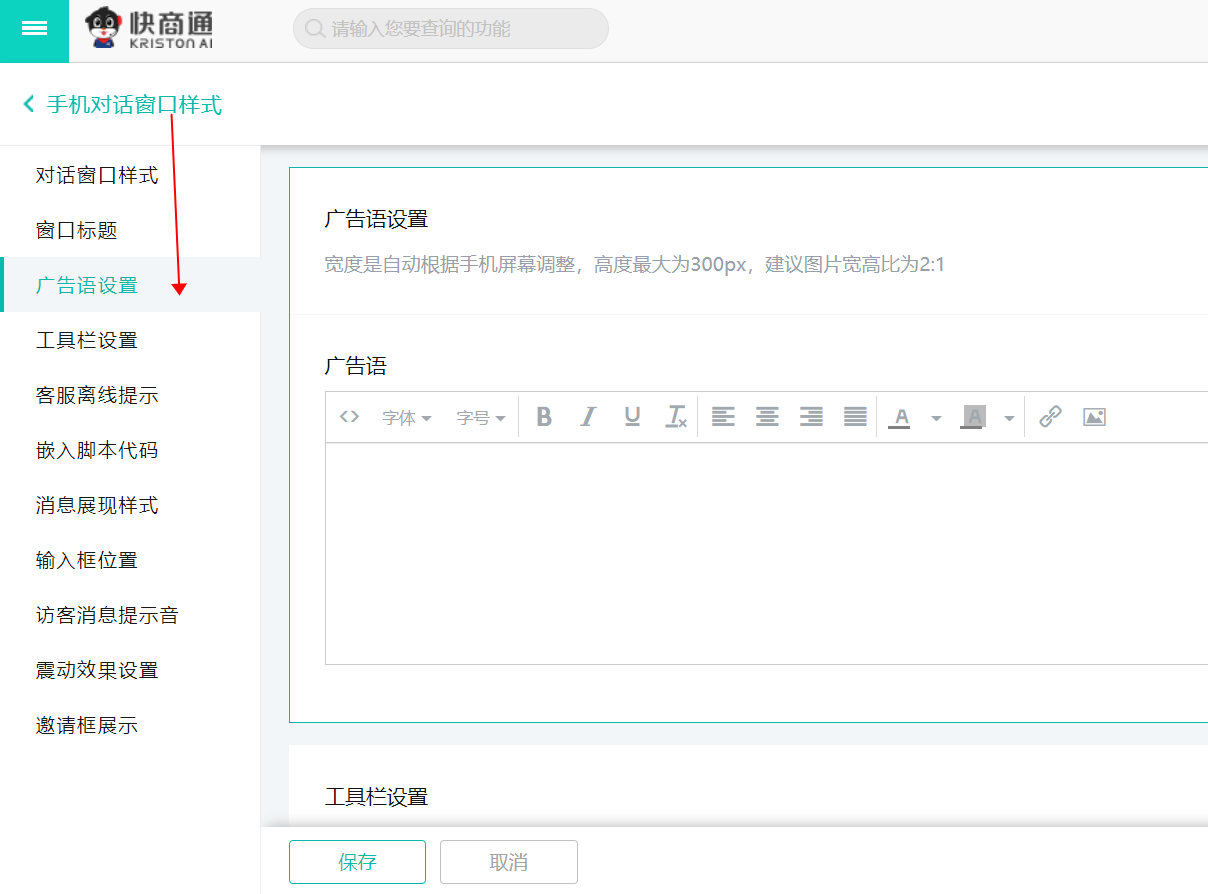設(shè)置中心——生成代碼——對(duì)話窗口——廣告欄設(shè)置