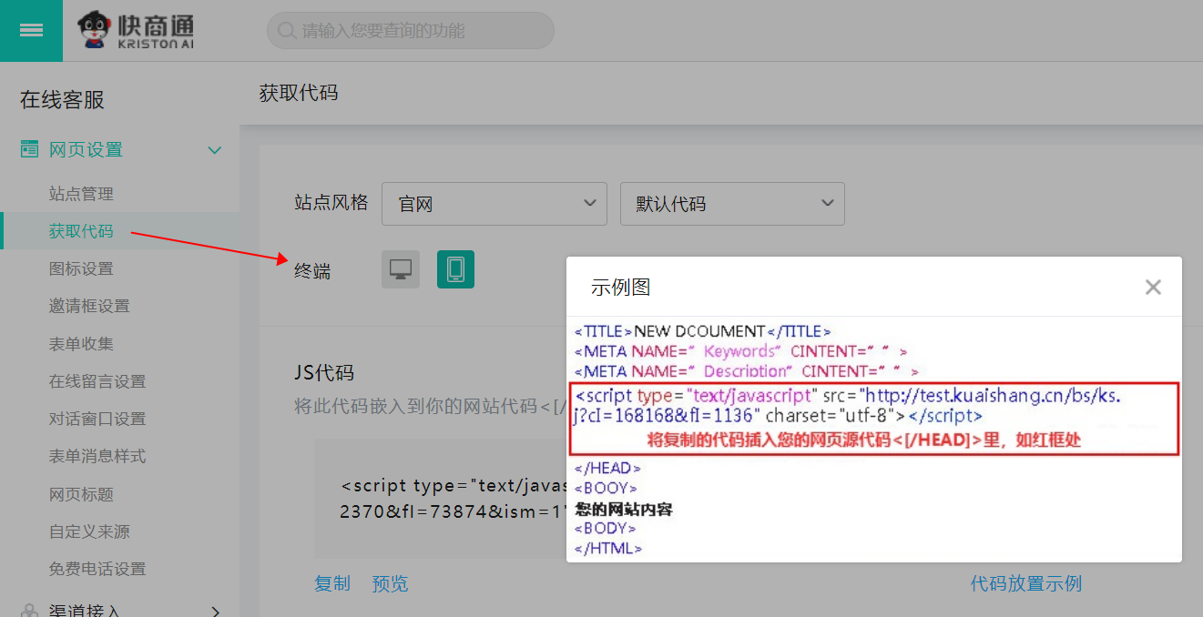 設(shè)置中心——電腦(手機(jī))生成代碼——手動(dòng)添加——JS代碼