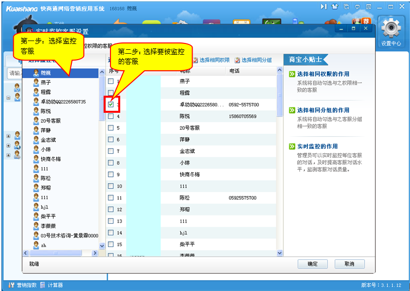 1、好處:針對新入職或者服務水平一般的客服人員,在接待訪客咨詢,遇到棘手問題時,其它客服人員可以在實時監控頁面,通過協助對話功能,輔助原客服更好的完成工作,更好得發揮企業內部,客服人員之間團結協助的優勢,讓客服人員可以快速的成長,并為您的訪客提供更優質、更專業的服務。