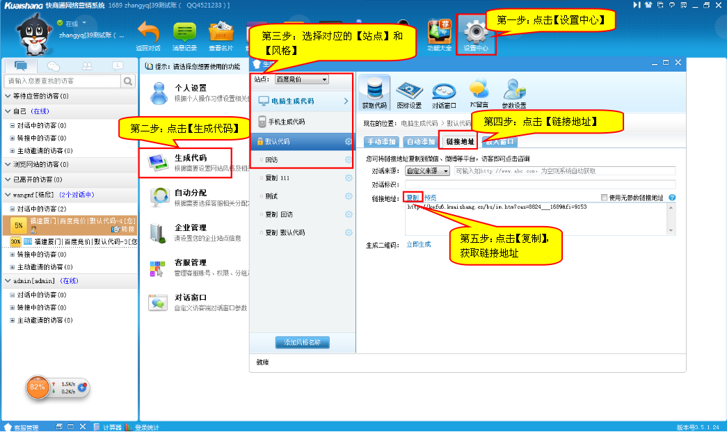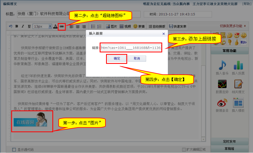 第一步:先從快商通客戶端獲取超鏈接地址。