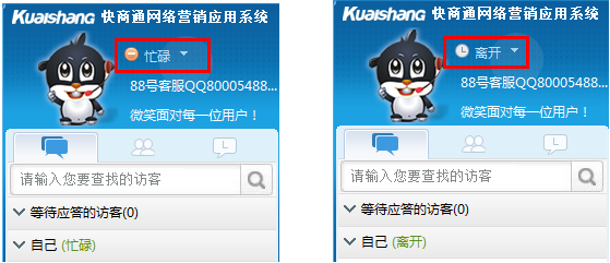 原因二:當客服登錄狀態為“離開”或“忙碌”、“離線”時,是不參與自動分配對話的;