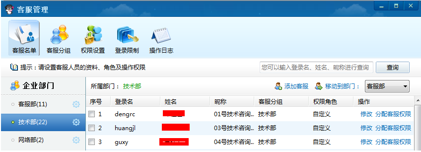 方案四:管理員如何修改其它客服的登錄名和密碼?