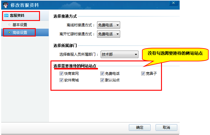 原因三:當“選擇需要接待的網站站點”沒有勾選,或未勾選全面,也會導致分配對話不均;