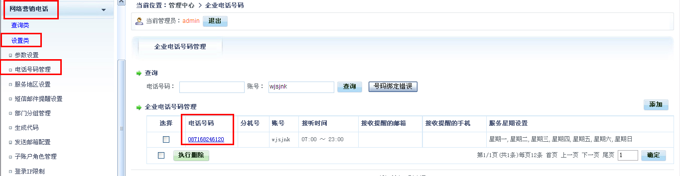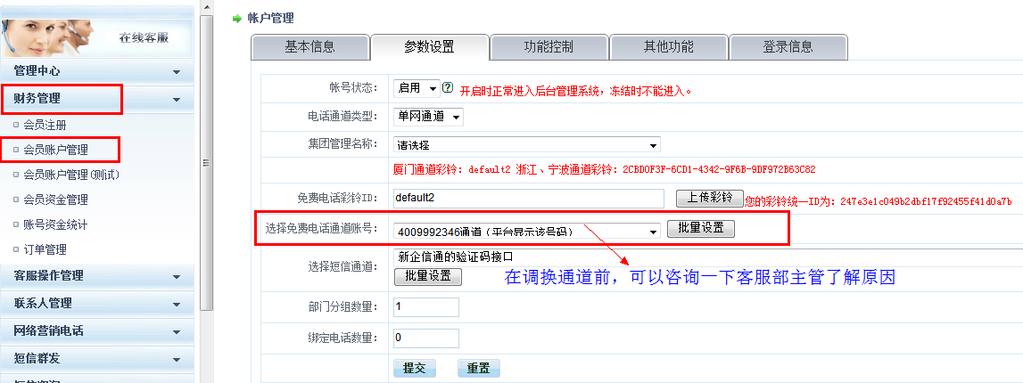第四步:檢查免費電話通道問題【進入 免費電話總后臺 調整個免費電話通道】