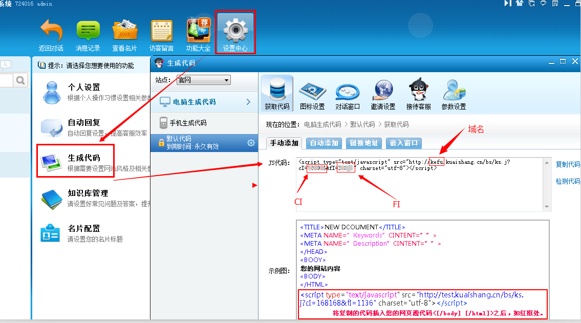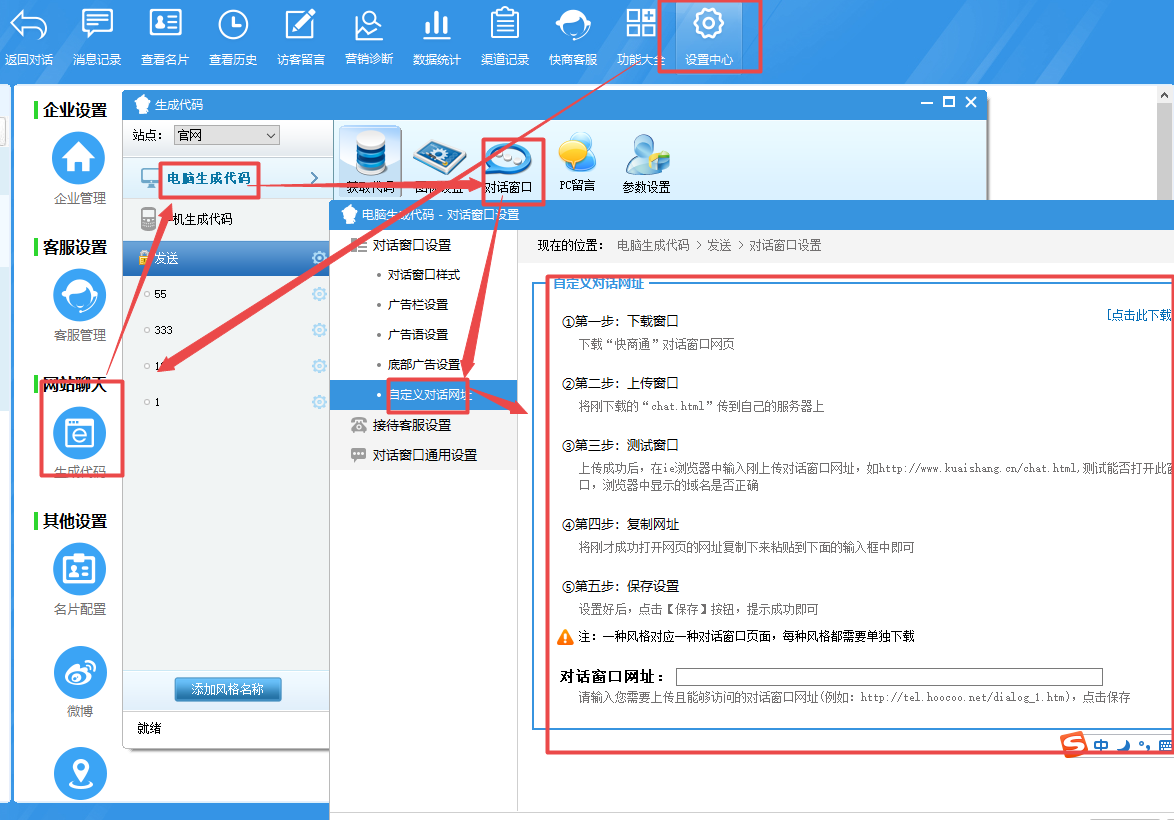 - 1.打開快商通客戶端的設置中心-點擊生成代碼