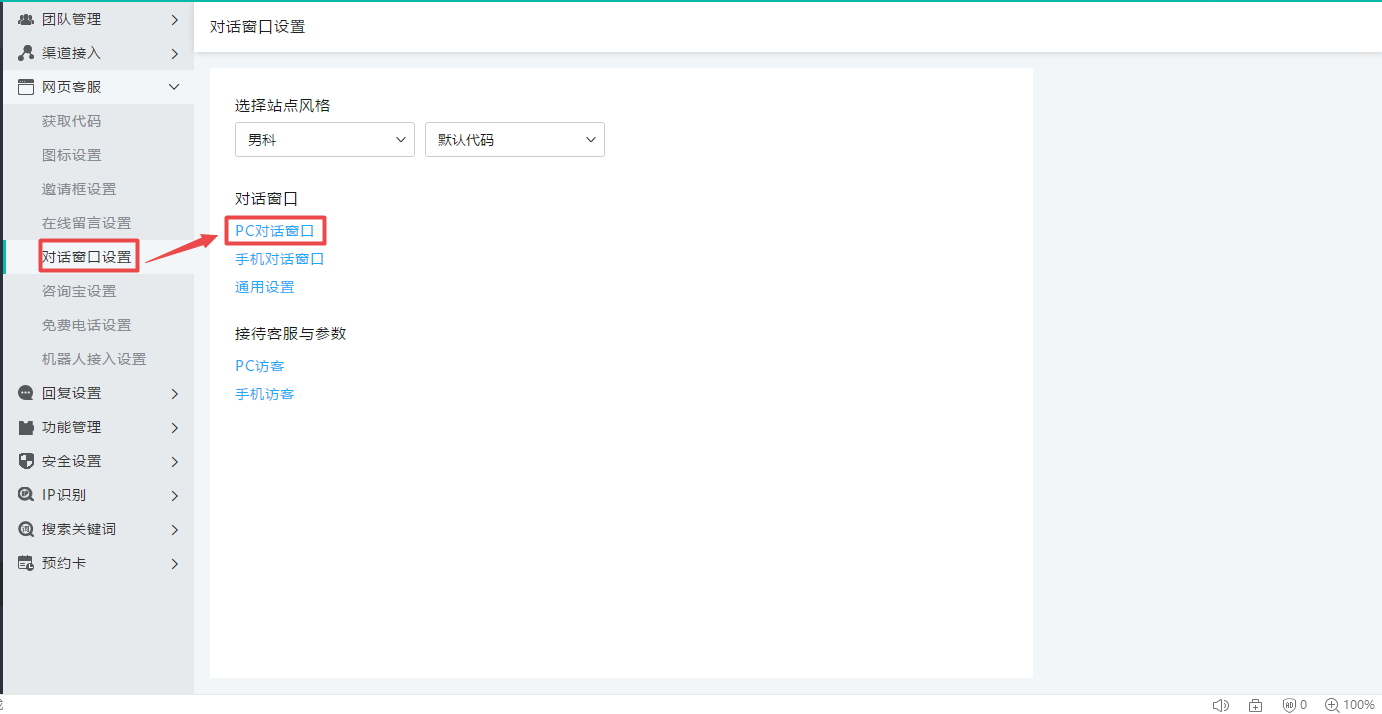 2.打開之后是跳轉到網頁版的,點擊對話窗口設置里面的PC對話窗口