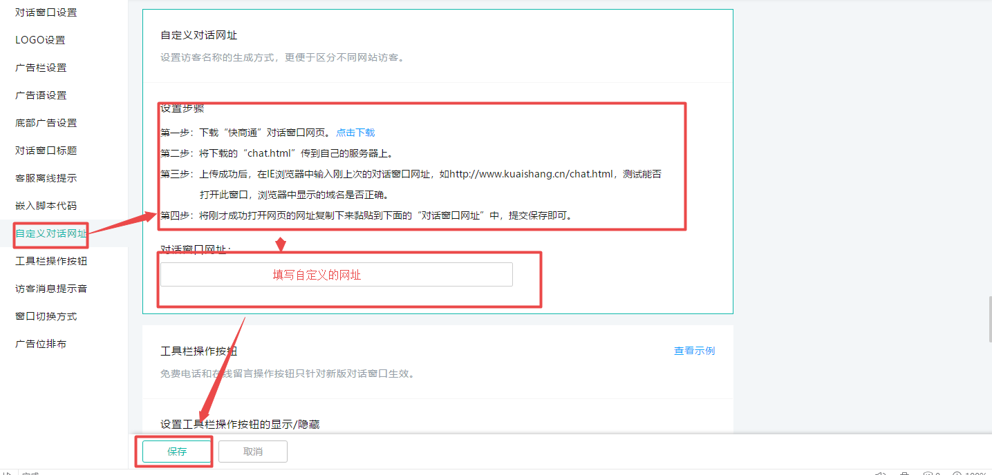 3.點擊自定義對話網址,按照設置步驟進行操作