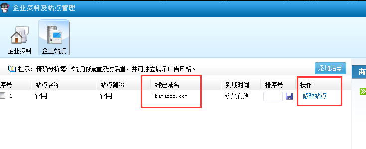 在企業管理里面修改企業,把域名改為“bama555.com”