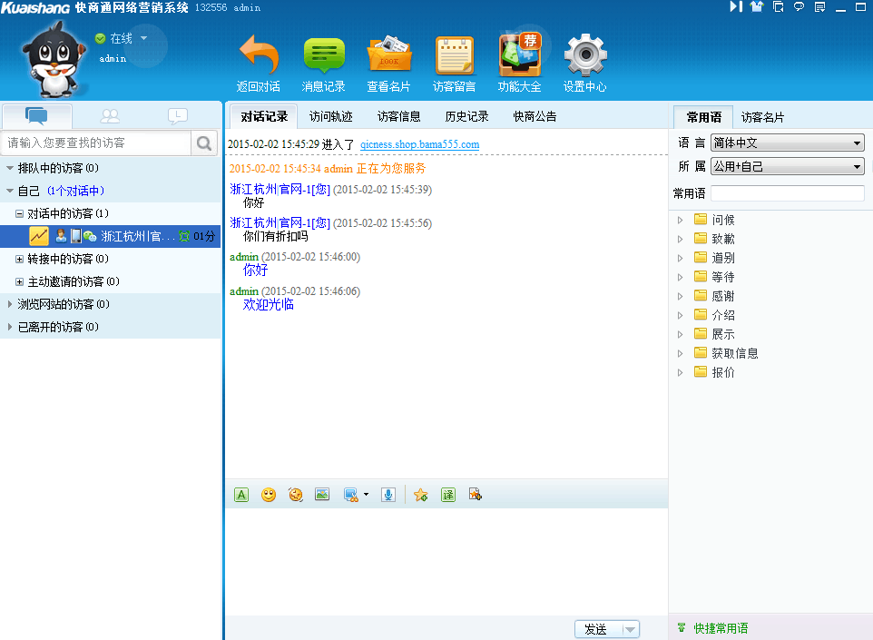 快商通是微信生意寶的合作產品,目前是免費使用,免費版只能綁定一個域名,只有一個坐席,付費版的不限域名,根據需求增加坐席,有數據統計、CRM、消息漫游等強大功能