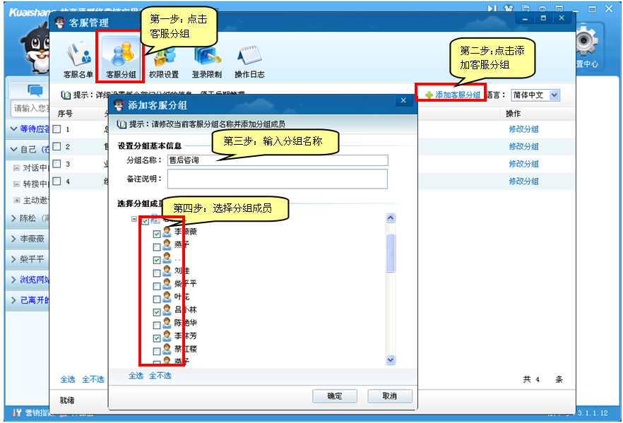 (2)設置客服分組,見如下圖: