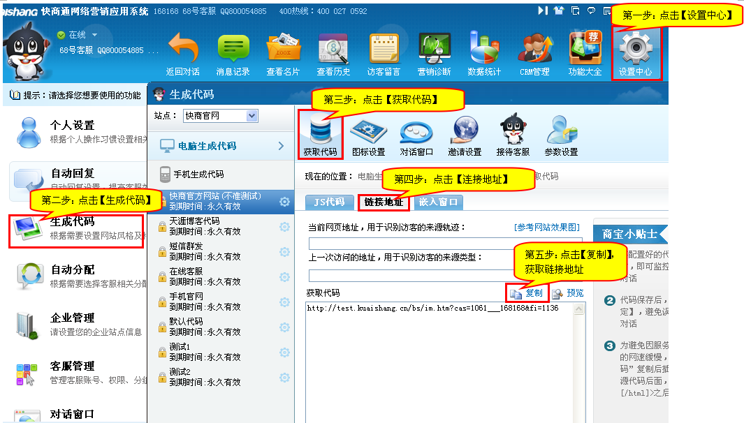 第一步:先從快商通客戶端獲取超鏈接地址。