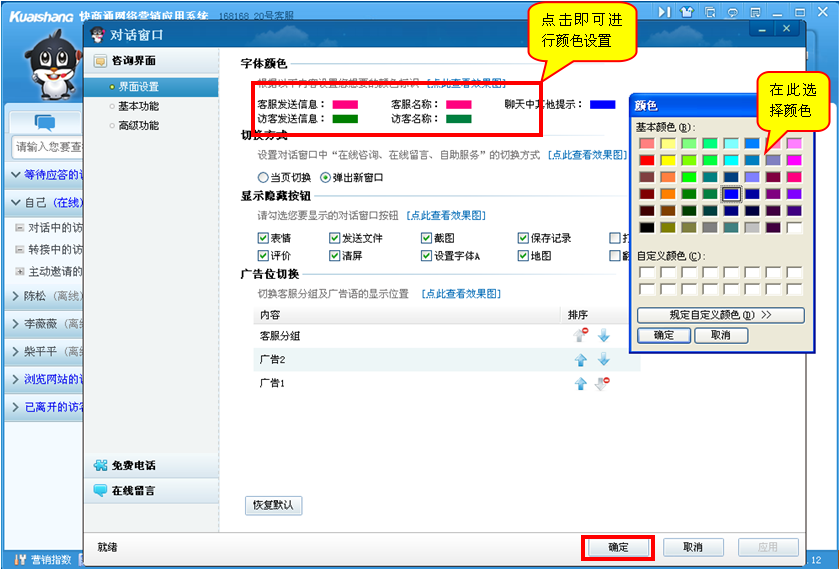 第二步:設置客服、訪客字體顏色,見如下圖: