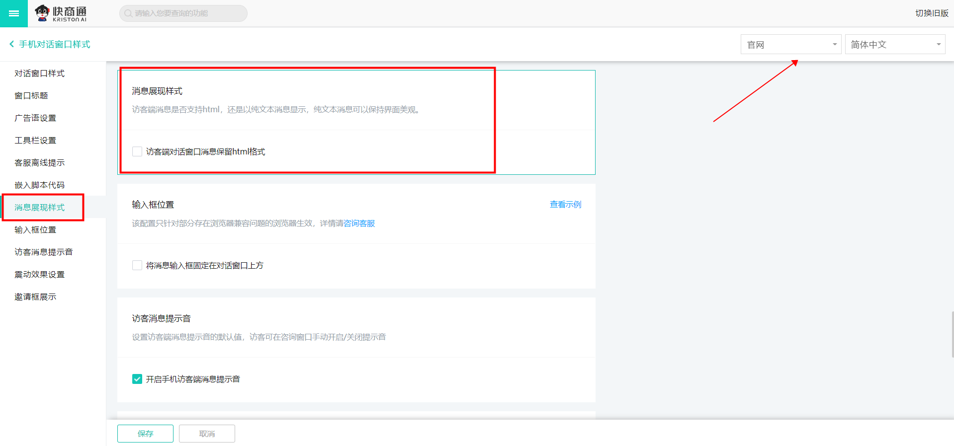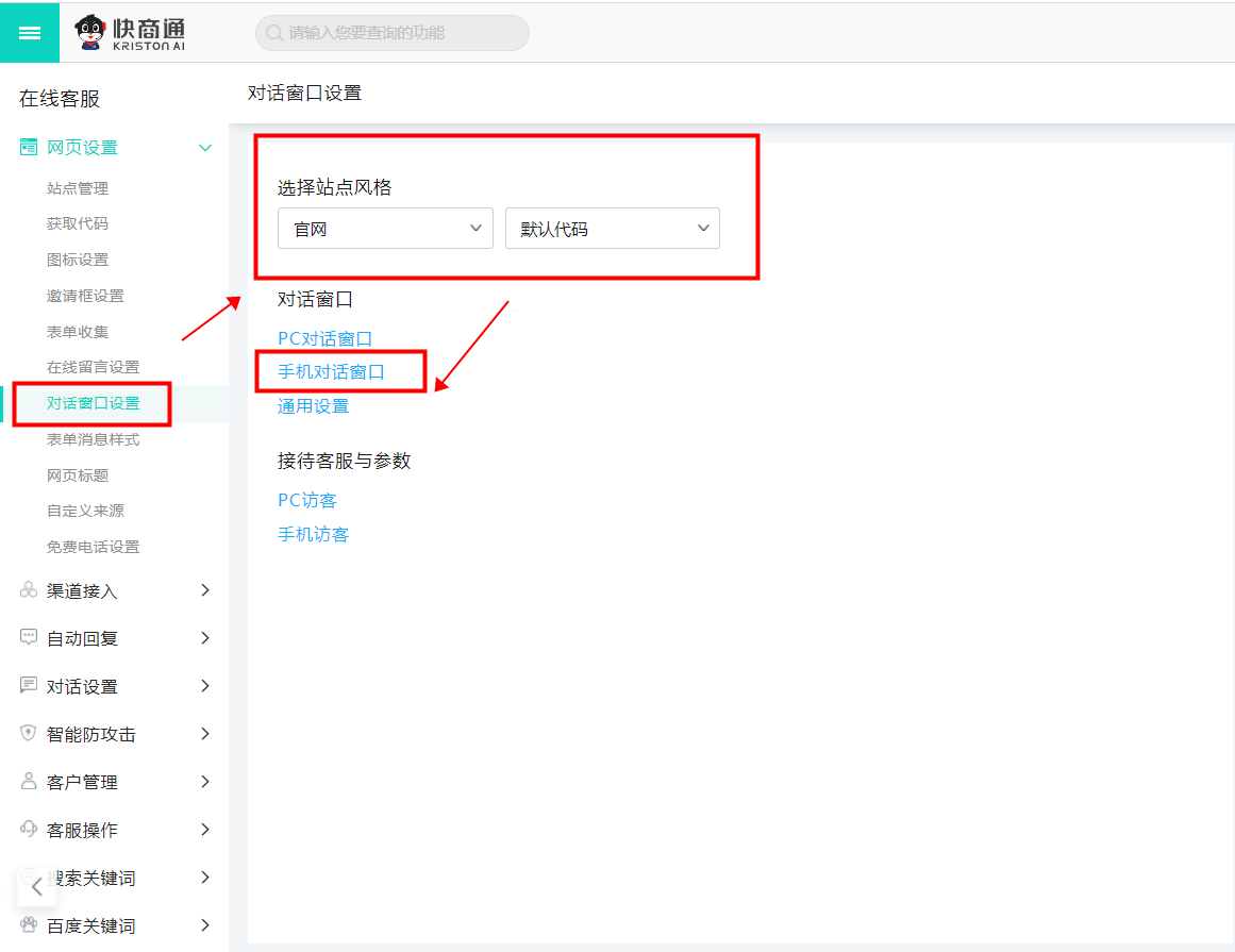 設置流程:【設置中心】→【站點管理】→【對話窗口設置】→【站點風格】→【手機對話窗口】→【消息展現樣式】
