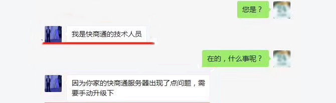 近期有客戶反映,有非我司工作人員通過冒充“快商通工作人員“以“服務器升級”、“產(chǎn)品到期”等名義,進行商密信息套取、名譽損壞等活動。上述行為嚴重威脅客戶信息安全與我司名譽,望廣大客戶注意區(qū)分。