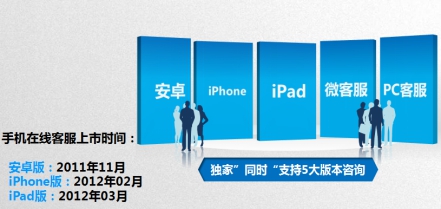 當(dāng)前,在線客服產(chǎn)品大多數(shù)作用于安卓以及PC平臺(tái),這也在很大程度上喪失了其他平臺(tái)的潛在客戶資源。快商通產(chǎn)品橫跨安卓、IOS、IPAD、微信、PC五大版本平臺(tái),完美囊括當(dāng)前用戶群體的主流平臺(tái)使得企業(yè)在面對(duì)不同平臺(tái)客戶時(shí)更顯淡定從容,從PC段到移動(dòng)端的實(shí)時(shí)切換,不再為客戶流失而扼腕嘆息。