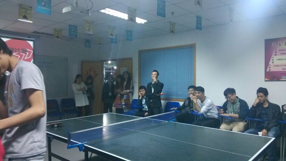 11日下午六點(diǎn)比賽拉開序幕,男單預(yù)選賽在多媒體會(huì)議室展開角逐。男隊(duì)員們展現(xiàn)出十八般武藝:大力扣殺、削球、旋球、快球……在他們手中信手拈來。現(xiàn)場(chǎng)粉絲團(tuán)的喝彩聲和歡呼聲此起彼伏、讓比賽進(jìn)入白熱化階段。經(jīng)過近兩個(gè)小時(shí)激烈角逐,男單預(yù)選賽前八強(qiáng)終誕生。