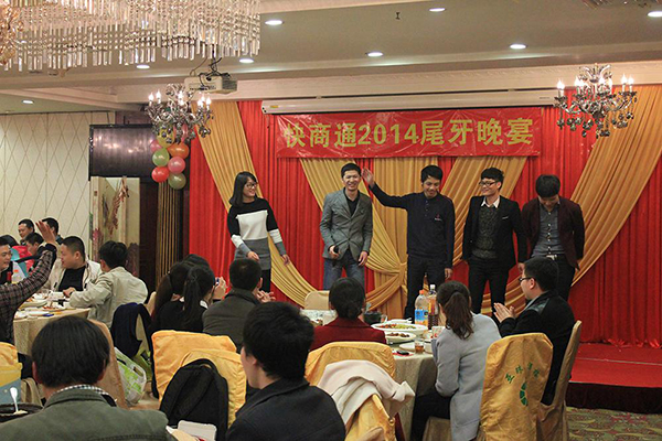馬奔前程去,羊攜好運來!2015年2月12日晚,快商通2014尾牙隆重舉行。快商通的小伙伴們共聚一堂,座無虛席;領導干部全員到齊,與眾同樂;現場觥籌交錯、歡聲笑語,可謂應羊年的景,一片喜氣洋洋。在這繼往開來的日子,我們快商科技舉辦歡樂祥和的年會,慶賀我們的業績、展望我們的未來。